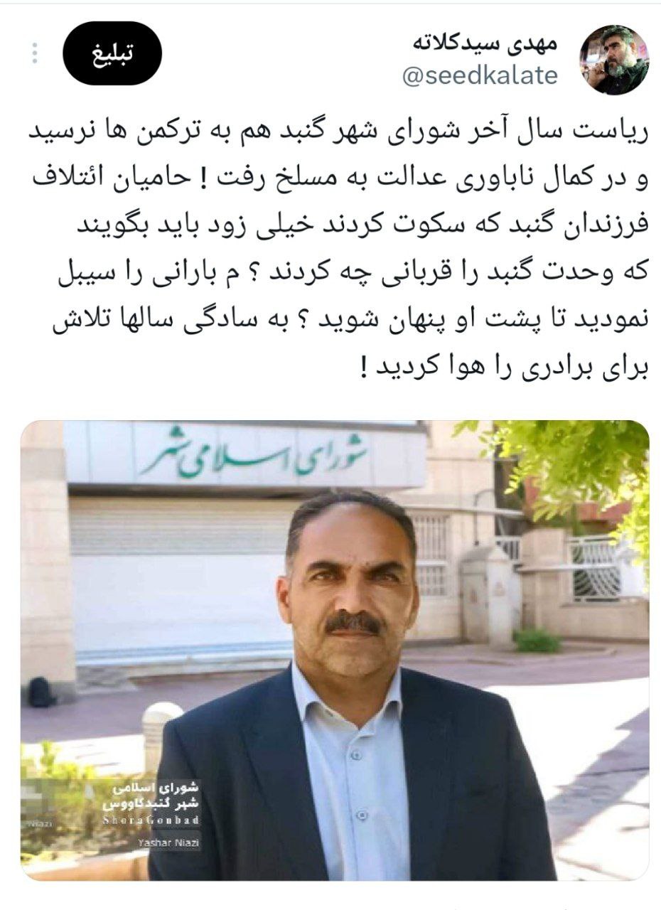 💥 با ۵ ساله شدن این دوره ی شورا انتظار میرفت اعضای غیرترکمن شورا اشتباه ۴ سال گذشته را جبران کنند اما دیدیم که در بزنگاه ها عبور از نفس کار سختی است و برخی برای مدتی کوتاه به قدرت رسیدن حاضرند اصل وحدت شهر را به مخاطره بیندازند .
